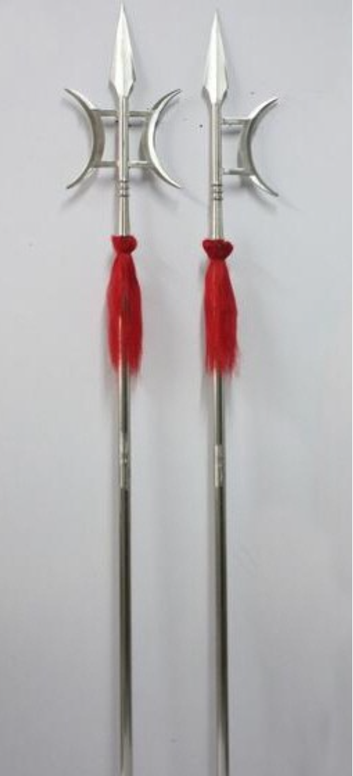전위가 사용하던 쌍철극이 유명해진 이유는 5백근을 짊어지고 7백리를 걷는 무장으로 평가받는 호거아가 쌍철극을 지닌 전위와 정면대결에서는 절대 이길 수 없다고 말하면서 쌍철극을 훔치는 장면이 나왔기 때문입니다. 쌍철극은 두개의 극을 한손에 하나씩 들어 사용하는 무기로 정사에서는 긴 화극을 사용했다고 하는데 극의 형태가 어떻게 생겼는지 정확한 확인은 어렵습니다.