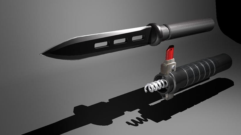 손잡이와 별개인 칼몸을 용수철, 공포탄, 압축가스 등으로 발사하도록 만든 군용대검입니다.